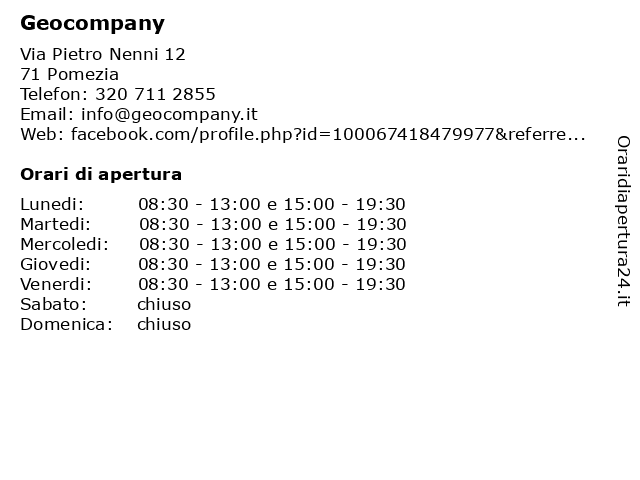 | Venerdi | 08:30-13:00 e 15:00-19:30 |