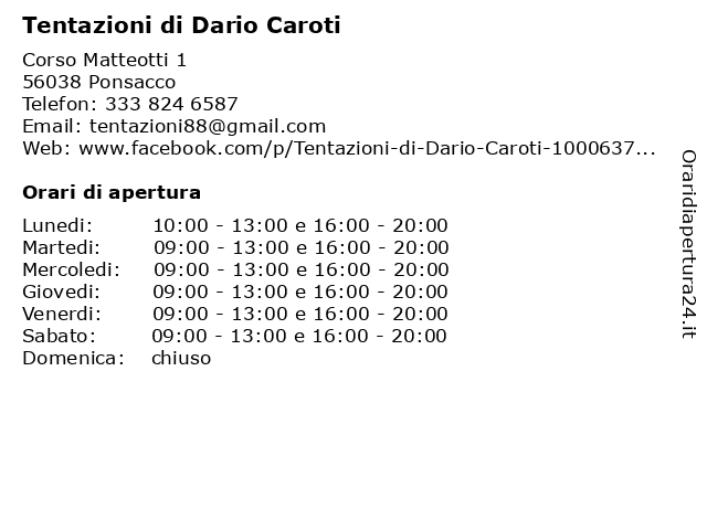 | Lunedi | 10:00-13:00 e 16:00-20:00 |