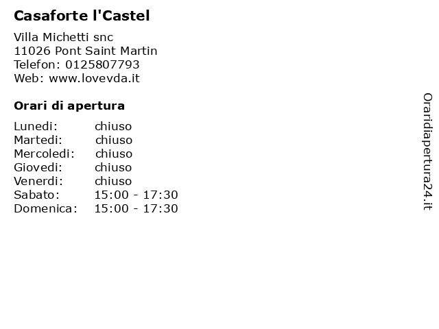 1 B&B Al Castel (distanza: 0,52 km) Via Castello 8, 11026 Pont-Saint-Martin al, b&b, castel, hotel casavacanze, villa b&b 2 Castel Savoia (Aprile-Settembre) (distanza: 19,76 km) Strada Castello Savoia 1, 11025 Gressoney-Saint-Jean (aprile, (orari, aprile, arte, castel, museo, opere, savoia, settembre), storia, turismo 3 Castel Savoia (Orari Ottobre-Marzo) (distanza: 19,76 km) Strada Castello Savoia 1, 11025 Gressoney-Saint-Jean (orari, agosto), arte, castel, giugno, luglio, marzo), museo, opere, ottobre, savoia, storia, turismo 4 Museo del Ponte Romano (distanza: 0,00 km) Via Chanoux snc, 11026 Pont Saint Martin archeologia, archivi, beni culturali, cataloghi, cattedrali, chiese, cultura, del, galleria, monumenti, museo, opere, parchi, ponte, reperti, romano, storia 5 Forte di Bard (distanza: 4,40 km) Località Bard snc, 11020 Bard archeologia, archivi, bard, beni culturali, cataloghi, cattedrali, chiese, cultura, di, forte, galleria, monumenti, museo, opere, parchi, reperti, storia 6 Casaforte - Accesso Box (distanza: 26,59 km) Via Trossi 41, 13871 Verrone accesso, box, casaforte, storage |