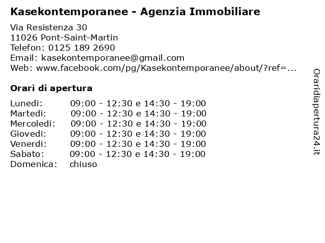 | Sabato | 09:00-12:30 e 14:30-19:00 |