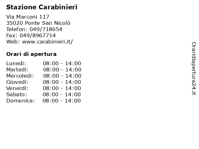 1 Stazione Carabinieri (distanza: 5,08 km) Via Rismondo 4, 35100 Padova carabinieri, carabinieri stazione, stazione, stazione carabinieri 2 Stazione Carabinieri (distanza: 5,92 km) Via Umberto I 60, 35020 Casalserugo carabinieri, carabinieri stazione, comando stazione carabinieri, stazione 3 Stazione Carabinieri (distanza: 6,43 km) Via Noventana 50, 35027 Noventa Padovana carabinieri, carabinieri stazione, stazione, stazione carabinieri 4 Stazione Carabinieri (distanza: 7,18 km) Via Padova 2, 30030 Vigonovo carabinieri, carabinieri stazione, stazione, stazione carabinieri 5 Stazione Carabinieri (distanza: 8,45 km) Via Palladio 1, 30039 Stra carabinieri, carabinieri stazione, stazione, stazione carabinieri 6 Stazione Carabinieri (distanza: 9,08 km) Via Enrico Bedin 2, 35010 Cadoneghe carabinieri, carabinieri stazione, stazione, stazione carabinieri |