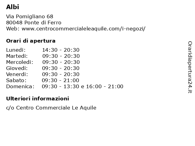 | Domenica | 09:30-13:30 e 16:00-21:00 |