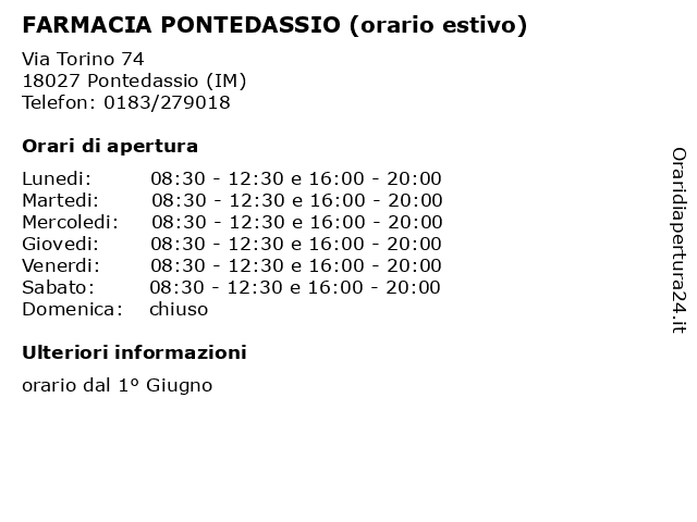 | Sabato | 08:30-12:30 e 16:00-20:00 |