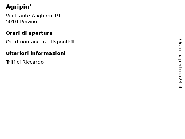 1 Triffici Bruno (distanza: 10,22 km) Localita' Corbara 45/a, 05018 Orvieto bar, birrerie, bruno, paninoteche, triffici 2 Agripiu' Petrini (distanza: 26,20 km) Via Amerina 23, 05024 Giove agripiu, art, cappuccino, comm, danilo, dett, giardin, giove, petrini, serra 3 Agripiu' (distanza: 28,55 km) Via Pian di Porto 17/a, 06059 Todi agripiu, agripiu', articoli, benciari, comm, dett, enzo, fausto, trombettoni, vari 4 Agripiu' Snc Di Conti Alessandro e c. (distanza: 41,37 km) Via Blera 47/51, 01019 Vetralla agripiu, alessandro, art, comm, conti, dett, giardin, serra 5 Agripiu' Snc Di Conti Alessandro e c. (distanza: 41,49 km) Via Blera 49, 01019 Vetralla agripiu, alessandro, art, comm, conti, dett, giardin, serra 6 Menicucci Valter Agripiu' Petrini (distanza: 45,63 km) Via Annunziata Tucci Rosselletti 46, 06132 Perugia agripiu, art, comm, dett, giardin, menicucci, petrini, serra, valter |