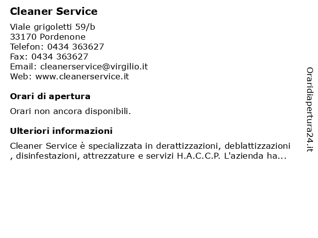 Cleaner Service è specializzata in derattizzazioni, deblattizzazioni, disinfestazioni, attrezzature e servizi H.A.C.C.P. L'azienda ha una trentennale esperienza nel settore.