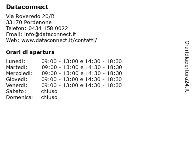 Lunedi | 09:00-13:00 e 14:30-18:30 |
