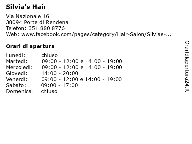 | Venerdi | 09:00-12:00 e 14:00-19:00 |