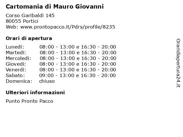 | Venerdi | 08:00-13:00 e 16:30-20:00 |