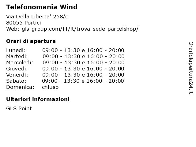 | Lunedi | 09:00-13:30 e 16:00-20:00 |