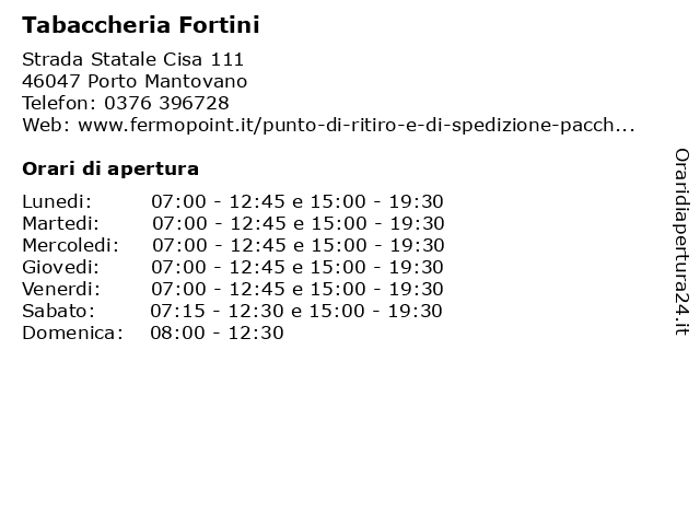 Sabato | 07:15-12:30 e 15:00-19:30 |