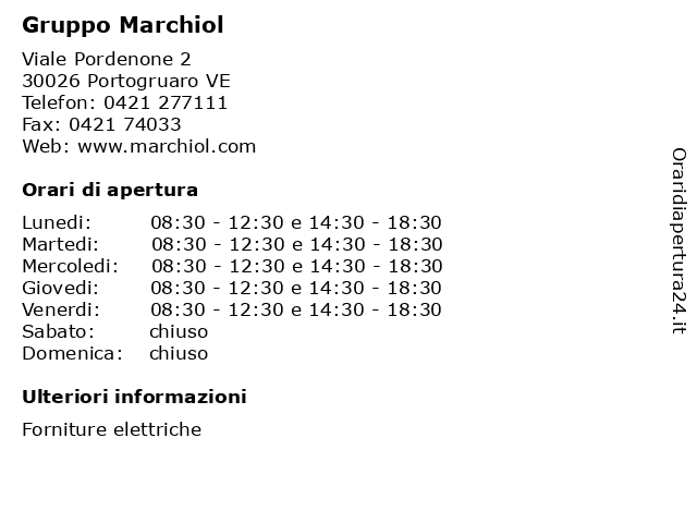 1 Marchiol Automazioni (distanza: 0,00 km) Viale Pordenone 2, 30026 Portogruaro automazioni, elettroforniture, marchiol, materiale industriale 2 Notaio Maddalena Marchiol (distanza: 0,72 km) Corso Martiri della Libertà 63, 30026 Portogruaro contratti, eredità, maddalena, marchiol, notai, notaio, pratiche 3 Meridiano 13 Sas Di Marchiol Enrico & c. (distanza: 12,49 km) Via Vittorio Veneto 26, 33053 Latisana 13, assic, enrico, finanz, immob, intermediaz, marchiol, meridiano 4 Marchiol (distanza: 43,59 km) Via Manzoni 94, 31015 Conegliano elettroforniture, marchiol, materiale industriale 5 Marchiol (distanza: 46,45 km) Viale della Repubblica 41, 31020 Villorba elettroforniture, illuminotecnica, marchiol, sede, villorba 6 Marchiol (distanza: 47,65 km) Viale Leonardo da Vinci 52, 33010 Reana del Rojale del, elettroforniture, illuminotecnica, marchiol, reana, rojale, sede |