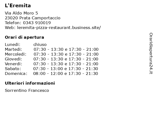 | Sabato | 07:30-13:00 e 17:30-21:30 |