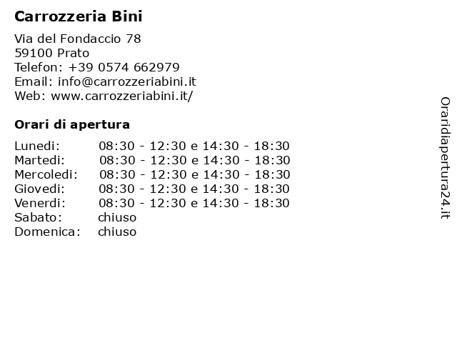 | Lunedi | 08:30-12:30 e 14:30-18:30 |