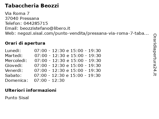| Sabato | 07:00-12:30 e 15:00-19:30 |