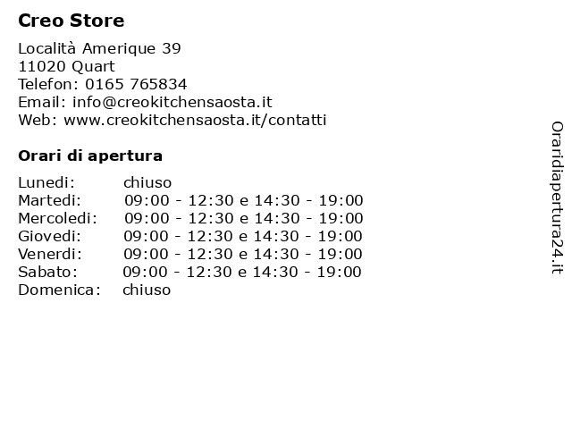 | Sabato | 09:00-12:30 e 14:30-19:00 |