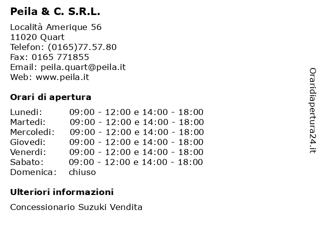 | Sabato | 09:00-12:00 e 14:00-18:00 |
