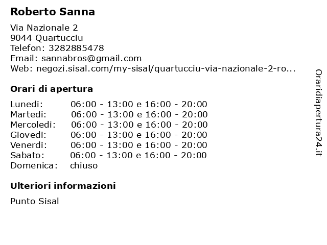 | Sabato | 06:00-13:00 e 16:00-20:00 |