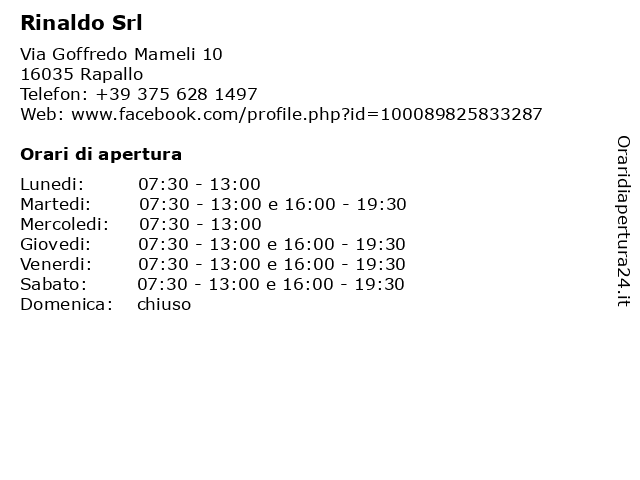 | Sabato | 07:30-13:00 e 16:00-19:30 |