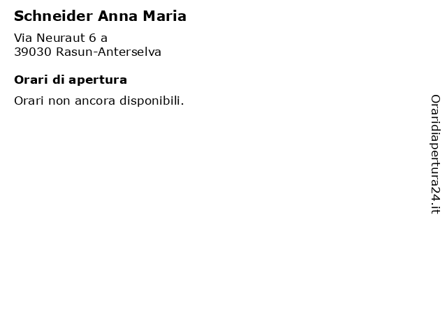 1 Schneider Dr. Markus (distanza: 9,50 km) Via Erlerbachl , 39030 Rasun-Anterselva dr., markus, schneider 2 Schneider Georg (distanza: 11,10 km) Rasun zona industriale artigianale 11, 39030 Rasun-Anterselva georg, negozi di forniture per la lavorazione del legno, schneider 3 Immobilien Sas Di Georg Schneider & c. (distanza: 11,15 km) Zona Artigianale Rasun 11, 39030 Rasun-Anterselva affitto, georg, immob, immobilien, proprietà, schneider 5 Ospedale di Brunico (Dott.ssa Christine Schneider) (distanza: 14,31 km) Via Ospedale 11, 39031 Brunico (dott.ssa, ambulatorio analisi, analisi, brunico, christine, di, laboratorio, ospedale, poliambulatorio, prelievi, salute, schneider) 6 Schneider Café Bar (distanza: 17,14 km) Via del Paese 35, 39030 Lutago bar, bere, caffetteria, café, locale, mangiare, ristorante, schneider, stuzzicheria |