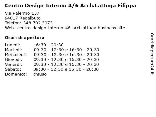 | Martedi | 09:30-12:30 e 16:30-20:30 |