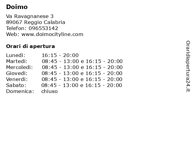 | Martedi | 08:45-13:00 e 16:15-20:00 |