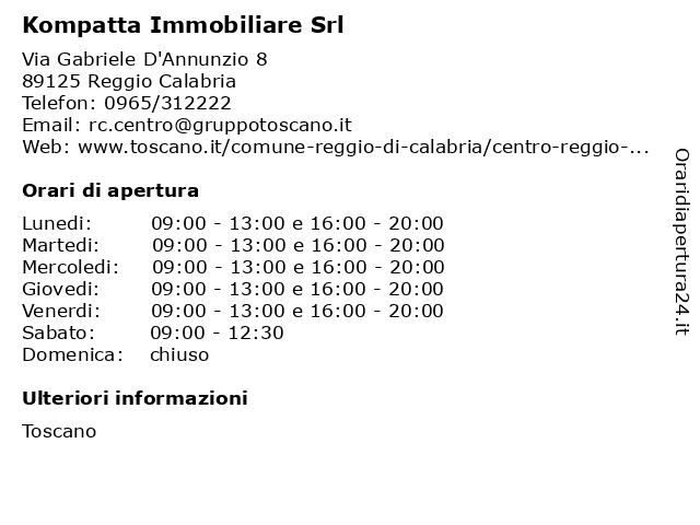 | Lunedi | 09:00-13:00 e 16:00-20:00 |