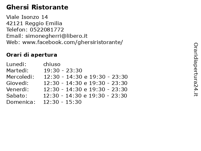 Giovedi | 12:30-14:30 e 19:30-23:30 |