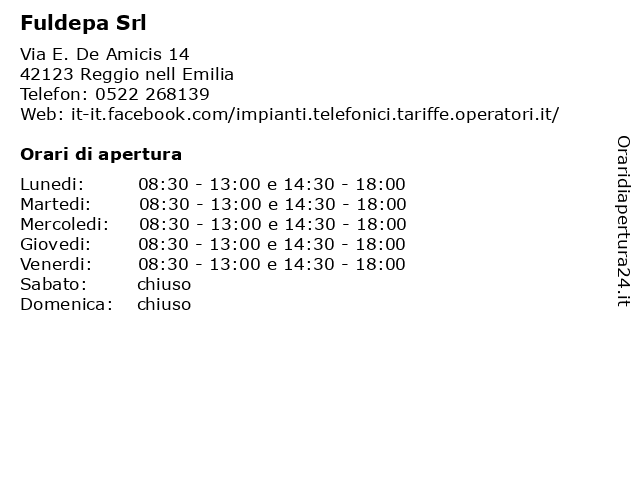 Lunedi | 08:30-13:00 e 14:30-18:00 |