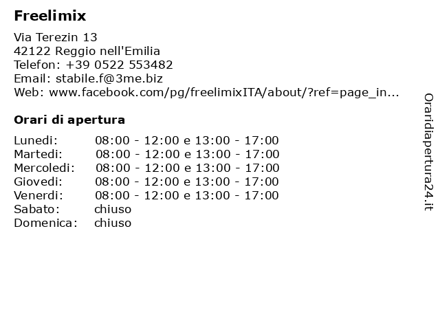 | Lunedi | 08:00-12:00 e 13:00-17:00 |