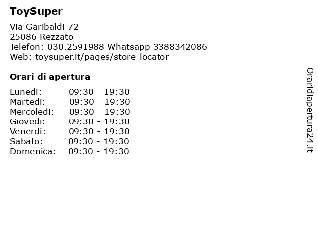 | Sabato | 09:30-19:30 |