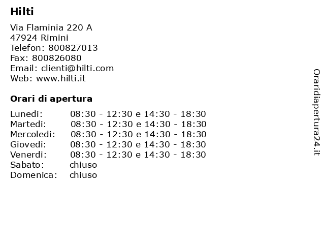 Lunedi | 08:30-12:30 e 14:30-18:30 |