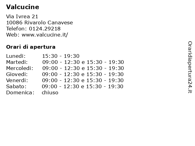 | Martedi | 09:00-12:30 e 15:30-19:30 |