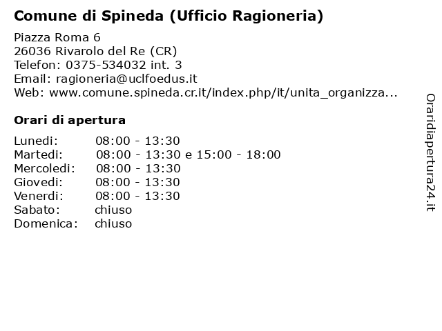 | Martedi | 08:00-13:30 e 15:00-18:00 |