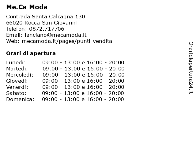 1 Me.Ca Moda (distanza: 10,90 km) Contrada Santa Liberata snc, 66026 Ortona abbigliamento, accessori, fashion, me.ca, moda, scarpe, vestiti 2 Ma.Ca. Di Massimini Mario & c. Sas (distanza: 3,99 km) Via Renzetti Floraspe 13, 66034 Lanciano assicurative, attivit, mario, massimini 3 So.Me.Fin Di D'Alessandro Diletta (distanza: 4,21 km) Corso Trento e Trieste 123, 66034 Lanciano (CH) d'alessandro, diletta, servizi finanziari, so.me.fin 4 La Terra Me' Di d'Alessandro Andrea (distanza: 4,86 km) Via Dante Alighieri 35, 66038 San Vito Chietino alessandro, andrea, me, pasticcerie, terra 5 Proposte Moda Srl (distanza: 4,97 km) Via Marconi 7, 66026 Ortona moda, proposte, vendita al dettaglio di abbigliamento 6 Magic Moda Di Sciascia Anna Lucia e Liberato Giancarlo Snc (distanza: 8,97 km) Contrada Valle Cicchitti 2, 66030 Poggiofiorito anna, art, casa, comm, dett, giancarlo, liberato, lucia, magic, moda, sciascia, vari |