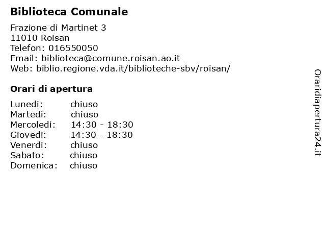1 Biblioteca Comunale (distanza: 1,29 km) Frazione Le Château 1, 11010 Gignod archivio, archivio storico, biblioteca, biblioteca comunale, comunale, libri 2 Biblioteca Comunale (distanza: 2,59 km) Excenex snc, 11100 Aosta (AO) biblioteca, comunale, lettura, libri, libro 3 Biblioteca Comunale (distanza: 3,98 km) Località Capoluogo 1, 11010 Allein biblioteca, comunale, nazionale, servizio, ufficio 4 Biblioteca Comunale (distanza: 6,07 km) Charvensod snc, 11020 Aosta (AO) biblioteca, comunale, lettura, libri, libro 5 Biblioteca comunale (distanza: 6,40 km) Tissoret 33, 11010 Sarre (AO) biblioteca, comunale, conoscenza, letteratura, libri, ricerca, scienza, storia, studio 6 Biblioteca Comunale (distanza: 7,20 km) Località Capoluogo 1, 11020 Charvensod biblioteca, comunale, nazionale, servizio, ufficio |