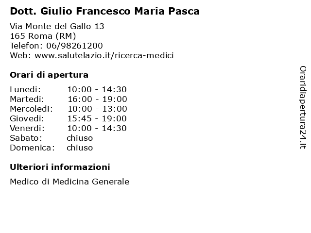 | Lunedi | 10:00-14:30 |