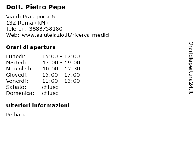 1 Dott. Pietro Pepe (distanza: 5,19 km) Via di Tor Vergata 67, 00133 Roma ambulatori, analisi, cura della persona, cure, dott., medici, medicina, pepe, pietro, sanità, visite mediche 2 Pepe Sciarria Claudio (distanza: 0,95 km) Via Borghesiana 324, 00132 Roma claudio, pane, pepe, rivend, sciarria 3 Pepe Jean London (distanza: 5,82 km) Via Collatina snc, 00132 Roma abbigliamento, abbigliamento donna, abbigliamento uomo, accessori, camicie, cappelli, cappotti, donna, felpe, jean, london, maglie, maglioni, pantaloni, pepe, scarpe, sciarpe, uomo 4 Hosteria Cacio & Pepe (distanza: 6,06 km) Via della Massa Calciana 21, 00133 Roma cacio, hosteria, pepe, ristorante 5 Pepe Jeans (distanza: 6,28 km) Via Collatina 858, 00155 Roma (RM) acquisti, convenienza, jeans, negozi, pepe, shopping, spesa 6 Pepe Jeans (distanza: 6,88 km) Via Collatina s.n.c., 00132 Roma (RM) abbigliamento, accessori, donna, jeans, pepe, uomo |