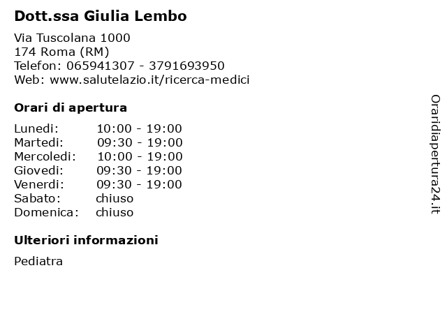 1 Lembo Giovanni (distanza: 0,38 km) Viale San Giovanni Bosco 6, 00175 Roma erboristerie, farmacie, giovanni, lembo, profumerie 2 Farmacia Fratelli Mataloni Livio e Giulia (distanza: 0,45 km) Via Marco Decumio 18, 00174 Roma farmacia, fratelli, giulia, livio, mataloni, medicinali, osteopati 3 BAR GIULIA (distanza: 2,78 km) VIALE ALESSANDRINO 409, 00172 ROMA bar, giulia, gratta e vinci, lotto, lottomatica, ricevitorie, scommesse, sigarette, sisal, tabaccheria 4 Avvocato Figāri Giulia Maria (distanza: 2,91 km) Via Taurianova 66/A, 00178 Roma (RM) avvocati, avvocato, cause, figāri, giulia, maria, processi, tribunali 5 La Dispensa di Giulia (distanza: 3,35 km) Via Marcianise 5/7, 00177 Roma acquisti, casa, dettaglio, di, dispensa, giulia, la, vendite 6 Istituto Comprensivo Viale Venezia Giulia (orario segreteria ricevimento DSGA) (distanza: 3,92 km) Viale della Venezia Giulia 50, 00177 Roma (orario, comprensivo, dsga), giulia, istituto, istituto statale, ricevimento, scuola, segreteria, venezia, viale |