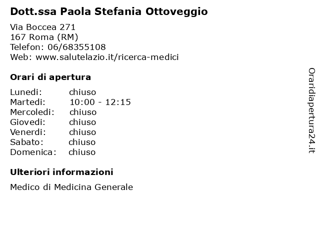 1 Dott.ssa Paola Stefania Ottoveggio (distanza: 5,69 km) Via Salvatore Cognetti De Martiis 8, 00166 Roma ambulatori, analisi, cura della persona, cure, dott.ssa, medici, medicina, ottoveggio, paola, sanità, stefania, visite mediche 2 OFF ROAD SNC DI FABBRO M.STEFANIA (distanza: 0,67 km) VIA BOCCEA 321, 00167 ROMA carrozzeria, componenti auto, controllo, di, fabbro, lubrificanti auto, m.stefania, motore, off, officina autorizzata, pezzi auto, problemia, ricambi, road, snc, suzuki 3 Moccia Stefania (distanza: 0,84 km) Via Crisafulli Vezio 43, 00166 Roma articoli, comm, dett, moccia, stefania, vari 4 Di Norcia Stefania (distanza: 1,10 km) Via Mattia Battistini 212/d, 00167 Roma erboristerie, farmacie, norcia, profumerie, stefania 5 Frezzotti Stefania (distanza: 2,36 km) Via Dei Carraresi 8/b, 00164 Roma bar, birrerie, frezzotti, paninoteche, stefania 6 Ridolfi Stefania (distanza: 2,53 km) Via Francesco Inghirami 22, 00162 Roma comm, dett, ridolfi, scarpe, stefania |