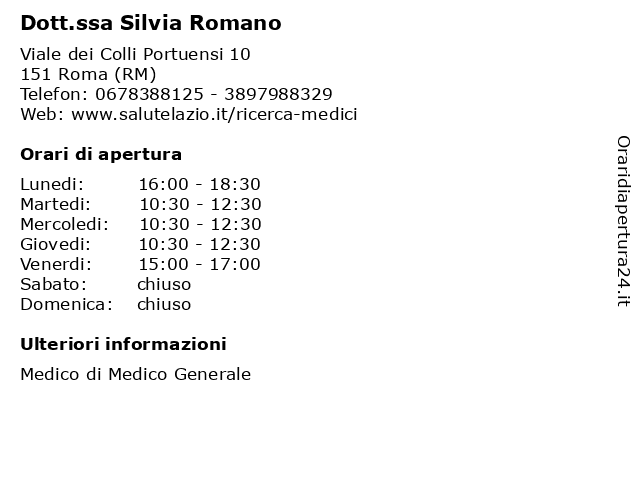 1 Dott.ssa Silvia Romano (distanza: 0,87 km) Viale dei Colli Portuensi 235, 00151 Roma ambulatori, analisi, cura della persona, cure, dott.ssa, medici, medicina, romano, sanità, silvia, visite mediche 2 Il Banco Di Romano Di Isabella Raguzzi (distanza: 0,39 km) Piazza San Giovanni Di Dio Snc, 00152 Roma abbigl, banco, comm, dett, genere, isabella, raguzzi, romano 3 Chipotles Creazioni Di Silvia Del Vecchio (distanza: 0,43 km) Via Vittorio Spinazzola 41, 00164 Roma catalogo, chipotles, corrispond, creazioni, silvia, vecchio, vendite 5 Avvocato Altea Silvia (distanza: 0,90 km) Via Antonio Toscani 79, 00152 Roma (RM) altea, avvocato, legale, silvia, studio, tribunale 6 Romano Sergio (distanza: 1,34 km) Circonvallazione Gianicolense, 00152 Roma alimentari, comm, dett, prod, romano, sergio, vari |