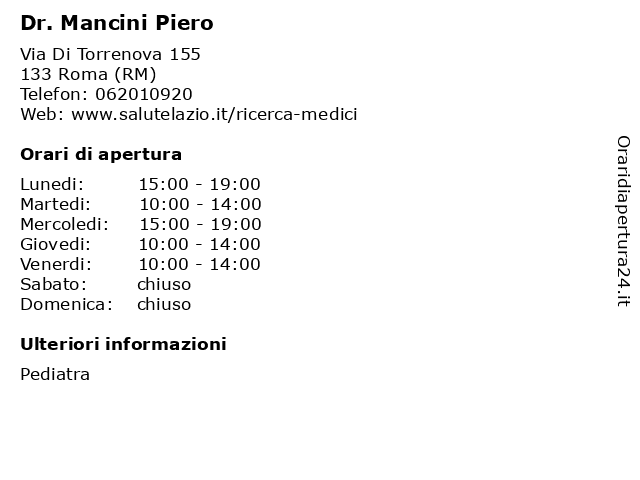 1 Dr. Mancini Piero (distanza: 0,06 km) Via Di Torrenova 163, 00133 Roma (RM) ambulatori, analisi, cura della persona, cure, dr., mancini, medici, medicina, piero, sanità, visite mediche 2 UCP Unità di Cure Primarie - Dott. Piero Mancini (distanza: 0,00 km) Via di Torrenova 155, 00133 Roma (RM) cure, cure mediche, di, dott., dottore, mancini, medico, piero, prescrizioni farmaci, primarie, sanità, ucp, unità, visite mediche 3 ANGELINI PIERO (distanza: 7,10 km) Appia Nuova 1049, 00178 Roma (RM) angelini, carta prepagata my wu, conto bancario, incassare denaro, inviare denaro online, mobile money transfer, money transfer, my wu, pagamenti internazionali, pagamento cash, pagamento online, phone, piero, quick pay, ricevere denaro, spedire denaro, trasferimento denaro, trasferimento di denaro a un conto bancario 4 Piero Giuliani Srl (Orario Contrattazioni Invernale) (distanza: 8,09 km) Via Tenuta del Cavaliere 1, 00012 Guidonia Montecelio (orario, contrattazioni, giuliani, invernale), mercato ortofrutticolo, ortofrutticolo, piero, srl, verdure 5 Piero Giuliani Srl (Orario Contrattazioni Estivo) (distanza: 8,09 km) Via Tenuta del Cavaliere 1, 00012 Guidonia Montecelio (orario, contrattazioni, estivo), giuliani, mercato ortofrutticolo, ortofrutticolo, piero, srl, verdure 6 Il Giardino di Piero (distanza: 9,39 km) Piazza Galeria 11, 00179 Roma bambini, di, didattica, educazione scolastica, giardino, il, piero, scuola |