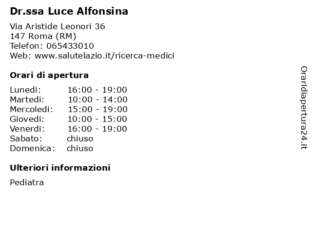 1 Alfonsina Luce (distanza: 0,12 km) Via Leonori Aristide 36/sc.a, 00147 Roma alfonsina, dottore o medico, luce, pediatri 2 Luce Experience (distanza: 1,99 km) Via Ardeatina 164, 00134 Roma (RM) belleza, dream, experience, hair, luce, parrucchieri, salud, spa 3 Luce Experience (distanza: 2,00 km) Via Ardeatina 164, 00147 Roma bar, cocktail, experience, luce, ristorante 4 La Luce Del Mondo (distanza: 2,94 km) Piazzale Ardeatino 1, 00154 Roma azienda, cliente, del, fabbrica, la, luce, mondo, vendita 5 Gestioni Luce Srl (distanza: 3,86 km) Via Antonio Pignatelli 15, 00152 Roma benzina, distributori, gestioni, luce 6 Scrimieri Luce (distanza: 3,97 km) Via Pier Vettori 39/41, 00151 Roma abbigl, comm, dett, genere, luce, scrimieri |