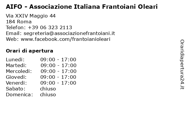 1 AIFO - Associazione Italiana Frantoiani Oleari (distanza: 0,06 km) Via XXIV Maggio 44, 00179 Roma aifo, associazione, associazioni, fondazioni istituti, frantoiani, italiana, oleari 2 Azienda Agraria Della Castelluccia Srl (distanza: 12,72 km) Via Cassia 1415, 00123 Roma agraria, azienda, castelluccia, gestione, immob, industriali, locaz 3 Agrigiardinaggio La Piana di Vitaliano Ranca (distanza: 21,00 km) Via Frascati Antica 15, 00078 Monte Porzio Catone agraria, agrigiardinaggio, di, giardinaggio, la, piana, ranca, vitaliano 4 Agriservice srl (distanza: 22,67 km) Via Frascati Colonna s.n.c., 00077 Monte Compatri agraria, agriservice, giardinaggio, srl 5 Università Agraria (distanza: 28,33 km) piazza Cesare Leonelli 22, 00063 Campagnano di Roma agraria, istruzione, specializzazione, università, università agraria 6 Oleari Sabina Bonifazi (distanza: 38,06 km) Via salaria , 02032 Fara in Sabina bonifazi, oleari, sabina |