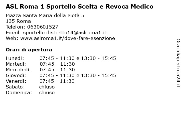 | Lunedi | 07:45-11:30 e 13:30-15:45 |