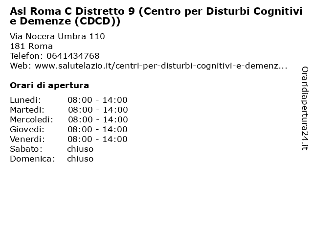Tag di ricerca per Asl Roma C Distretto 9 (Centro per Disturbi Cognitivi e Demenze (CDCD)):roma, lazio, asl, (centro, distretto, disturbi, cognitivi, demenze, vaccinazione), (cdcd)) |
