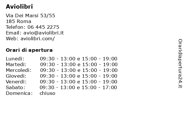 | Sabato | 09:30-13:00 e 15:00-17:00 |