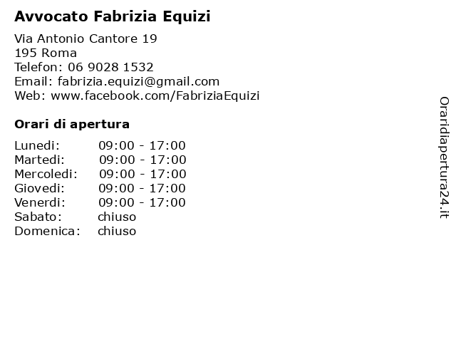 1 Avvocato Equizi Gregorio (distanza: 0,28 km) Via Antonio Chinotto 1, 00195 Roma avvocati, avvocato, equizi, gregorio, legge, studio, tribunali 2 Avvocato Castagna Fabrizia (distanza: 1,49 km) Via Trionfale 5637, 00136 Roma (RM) appuntamenti, avvocati, avvocato, castagna, difensori, fabrizia, leggi 3 Avvocato Grimaldi Fabrizia (distanza: 1,77 km) Via D. Chelini 5, 00197 Roma (RM) avvocati, avvocato, fabrizia, grimaldi, pratiche, tribunali, uffici 4 Avvocato Morandi Fabrizia (distanza: 4,42 km) Via Ravenna 8, 00161 Roma (RM) appuntamenti, avvocati, avvocato, difensori, fabrizia, leggi, morandi 5 Ortofrutta Mauro e Fabrizia (distanza: 4,70 km) Via Catania 70, 00161 Roma (RM) acquisti, convenienza, fabrizia, mauro, negozi, ortofrutta, shopping, spesa 6 Dott.ssa Fabrizia Argirò Psicologa (distanza: 5,03 km) Via di San Ippolito 9, 00162 Roma adolescenti, adulti, argirò, consulenza psicologica, coppie, dott.ssa, fabrizia, famiglie, psicodiagnosta, psicologa, psicologo |