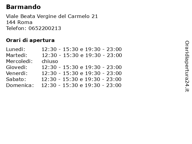 | Lunedi | 12:30-15:30 e 19:30-23:00 |