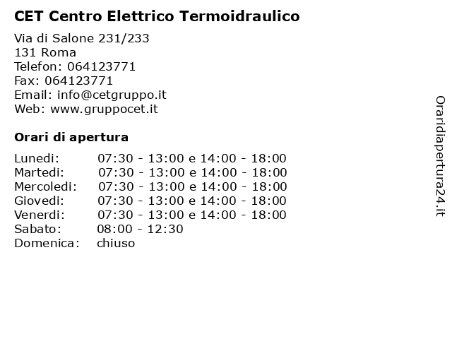 | Lunedi | 07:30-13:00 e 14:00-18:00 |