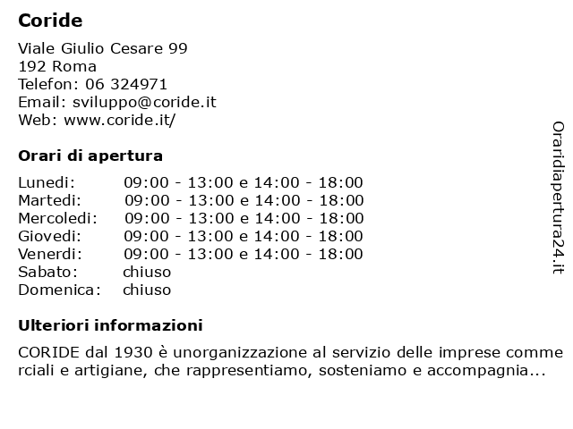 | Martedi | 09:00-13:00 e 14:00-18:00 |